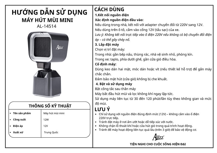 Máy hút khói mini để bàn Alizz AL-14514 là lựa chọn thông minh cho gia đình yêu thích lẩu, nướng tại nhà mà vẫn muốn giữ không gian luôn thoáng sạch. Với thiết kế nhỏ gọn, lực hút mạnh và cách sử dụng đơn giản, sản phẩm mang đến trải nghiệm ăn uống thoải mái, không lo mùi khói ám quần áo hay căn phòng. Đây chính là giải pháp tiện lợi, tiết kiệm và hiệu quả cho mọi gia đình hiện đại.